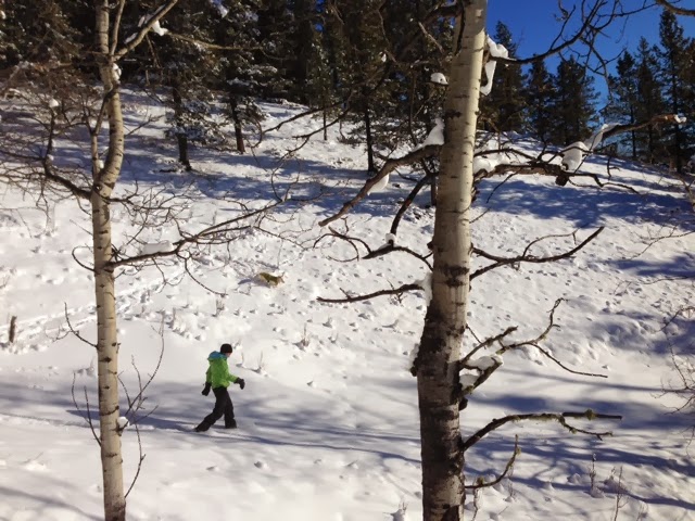 Started out same route as yesterday, then took off to Sugar Momma, Snag it..... and Boundary Ridge. We opted for no snowshoes again, and it went well. It didn't take long before we both got our temperatures up and at one point had to shed some layers.